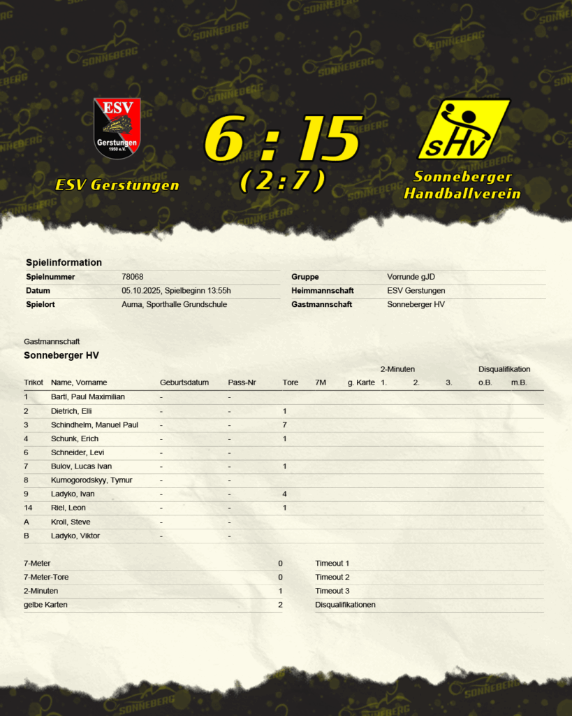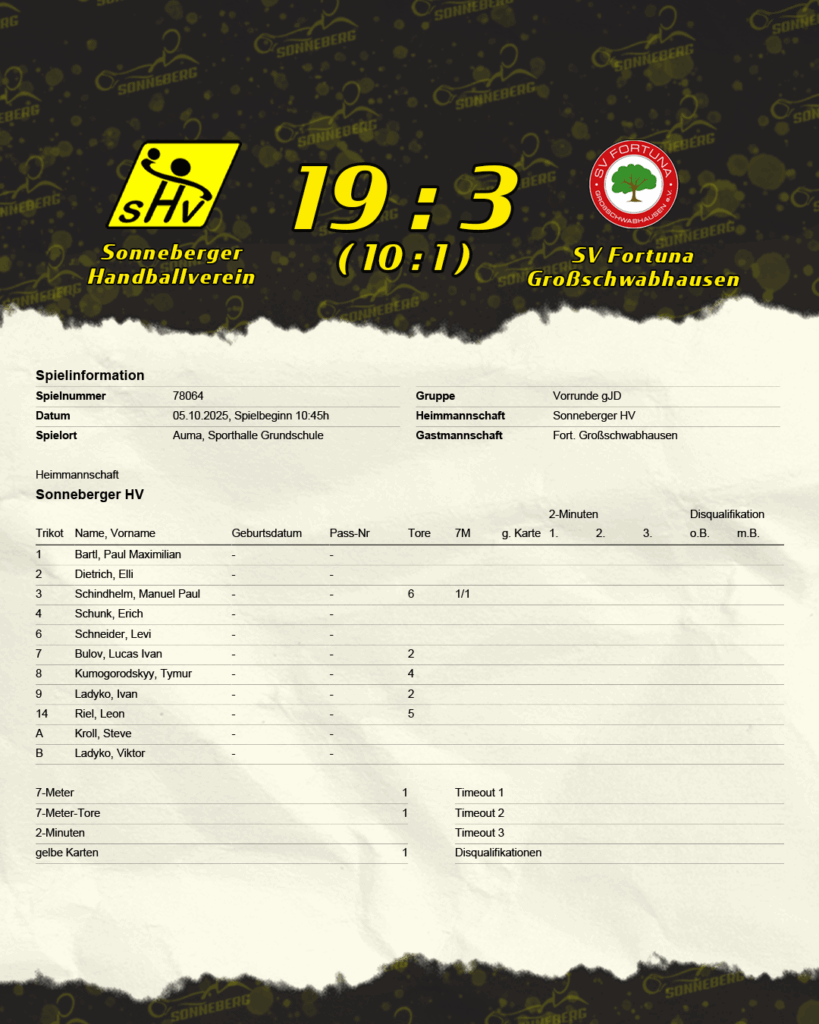 Mit drei Siegen aus drei Spielen gelang das der von Steve Kroll und Viktor Ladyko betreute Truppe sehr erfolgreich. Dabei wurde es lediglich gegen die Gastgeber SV Blau-Weiß Auma beim 13:10-Sieg etwas enger. Die Duelle gegen den ESV Gerstungen (15:6) und Fortuna Großschwabhausen (19:3) konnten wesentlich deutlicher gewonnen werden und erfreulicherweise trugen sich alle teilnehmenden Kinder auch in die Torschützenliste ein.